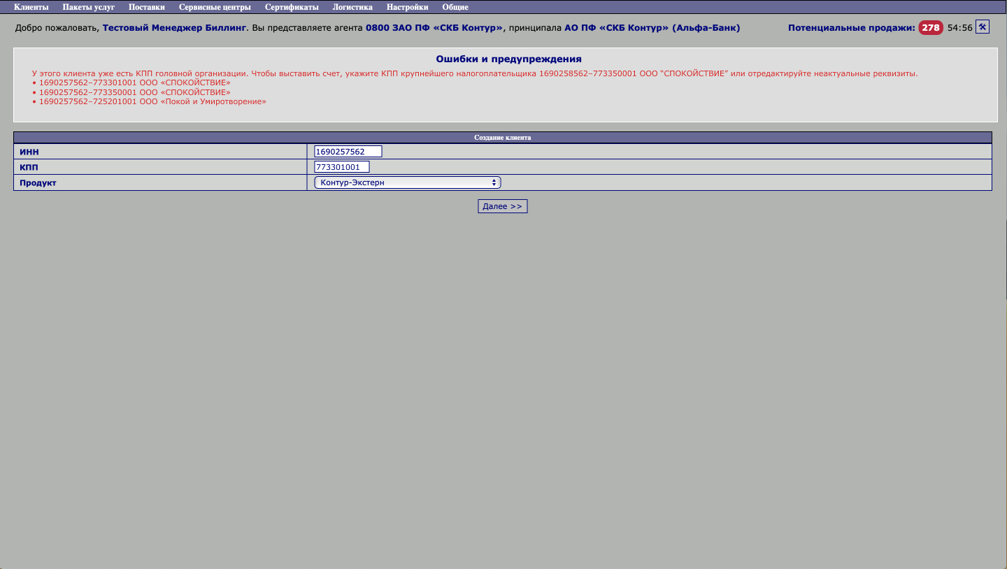 - КС и Биллинг. Через редактирование клиентов
