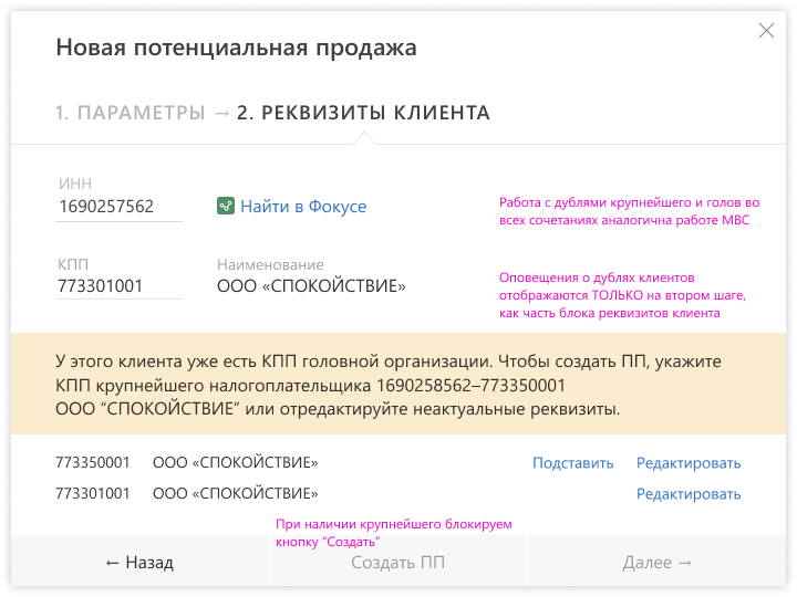 Запрет на создание дублей клиентов