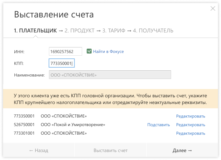 КПП1 != КПП2