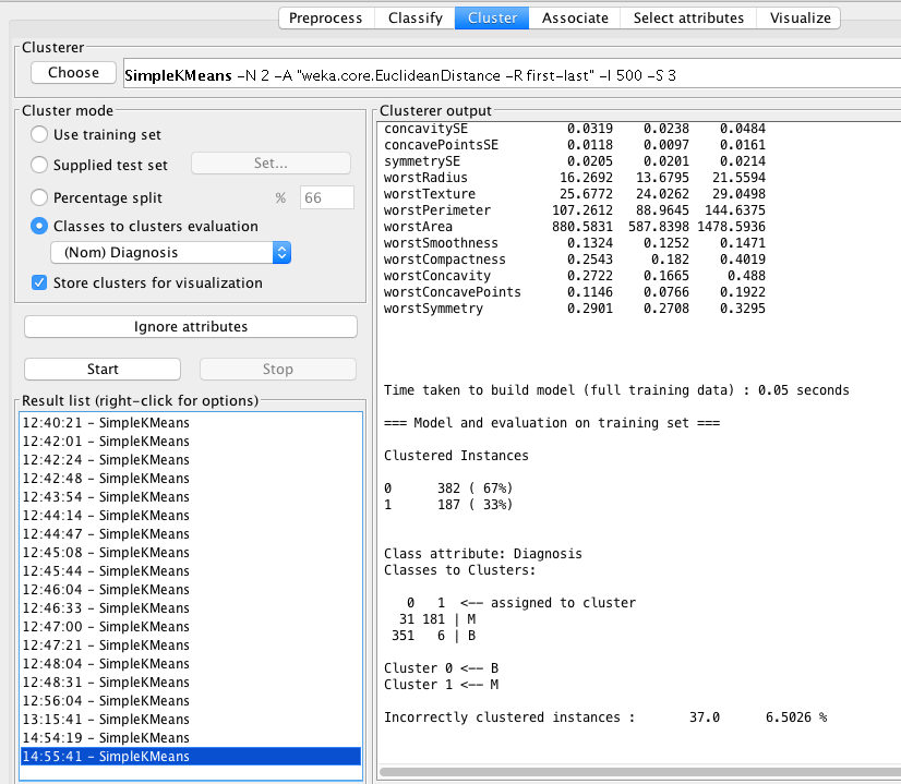 - From K-means: Worst Perimeter, Worst Area, Worst Radius