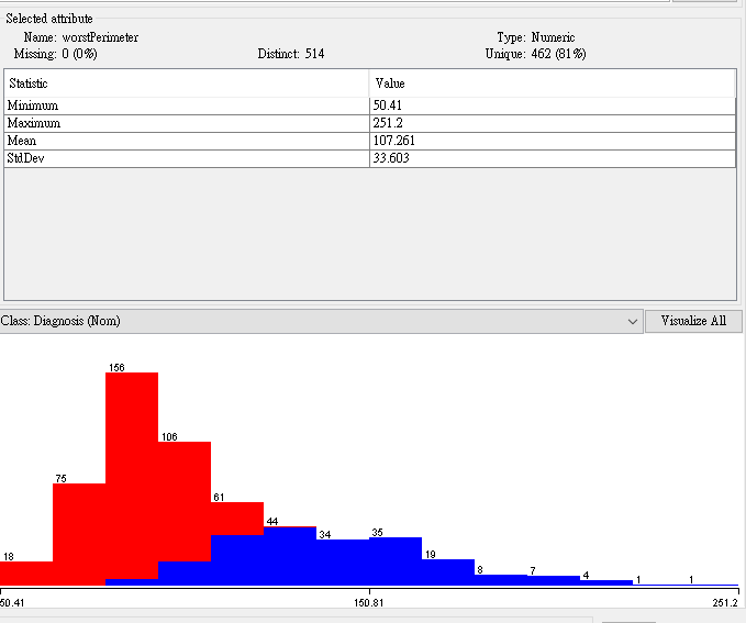 - Third floor: WorstPerimeter、WorstTexture、MeanSmoothness