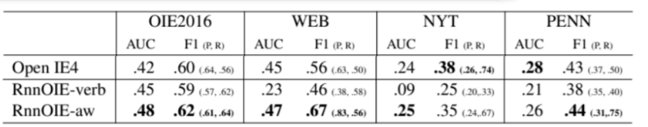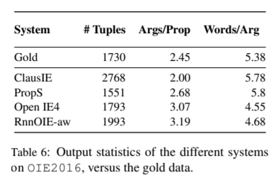 | ClausIE | PropS | Open IE4 | RnnOIE | |