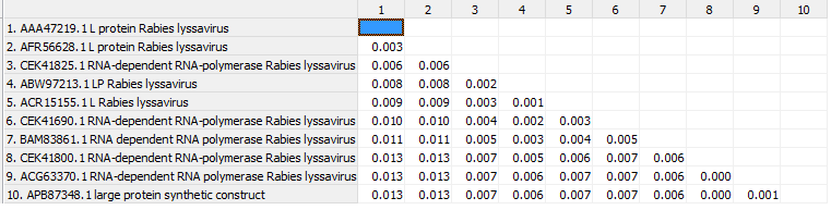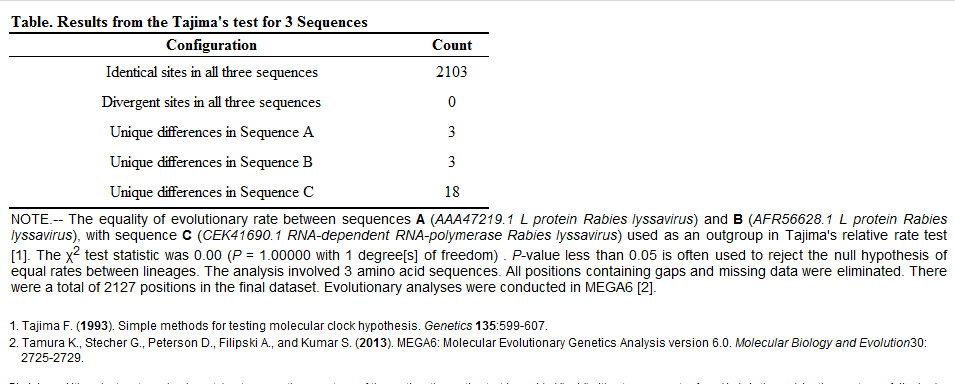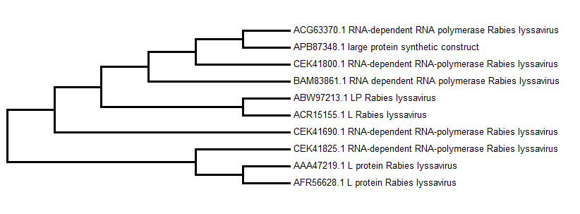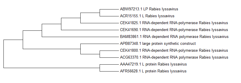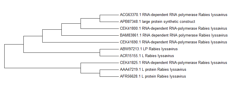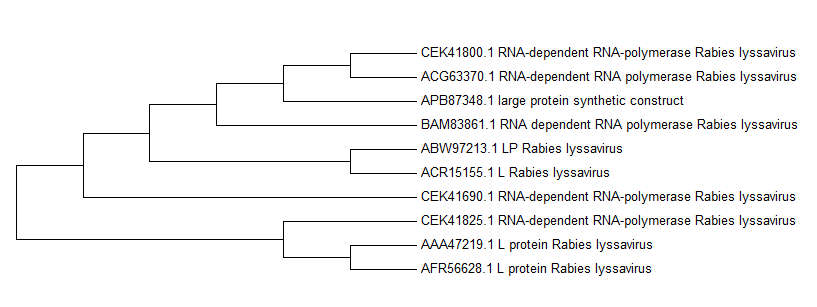 Rabies的基因在資料庫內的序列比對差異都很小,表示此病毒突變性不高相當穩定,加上查詢到的參考文獻: