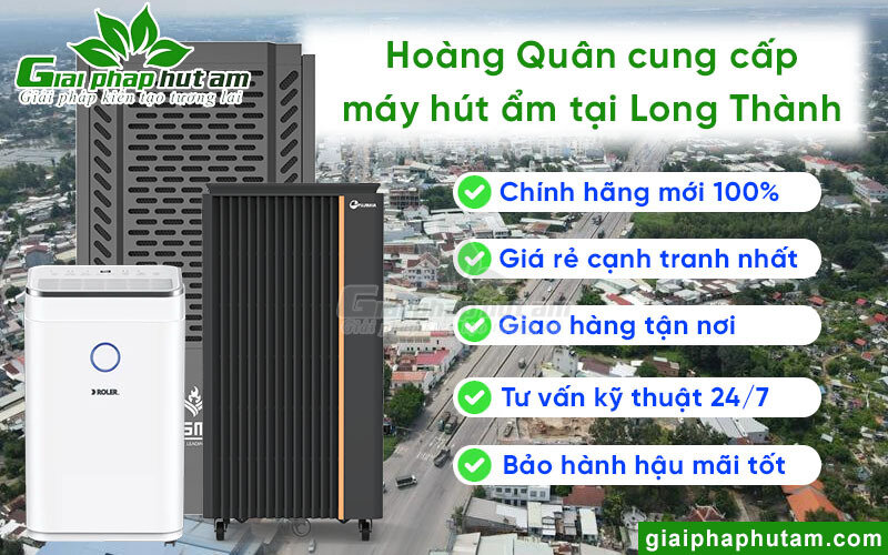 Tiên phong trong cung cấp máy hút ẩm tại Long Thành từ năm 2014, Công ty TNHH Đầu Tư TM DV XNK Hoàng Quân là đối tác quen thuộc của rất nhiều doanh nghiệp, nhà máy, xí nghiệp tại đây, chúng tôi cung cấp máy hút ẩm công nghiệp chính hãng, giá rẻ với độ chính xác cao, giải xử lý ẩm từ 30-80% đáp ứng mọi nhu cầu sản xuất, bảo quản vải lụa, da giày, linh kiện cơ khí, điện tử, nông sản khô, gạo,...đảm bảo chất lượng luôn là tốt nhất để đóng gói hoặc làm nguyên liệu để sản xuất.