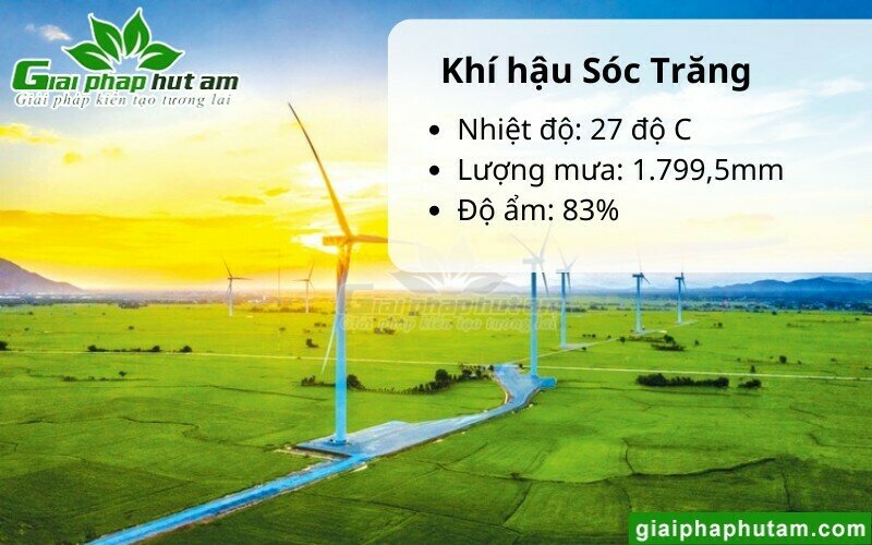 Tại Sóc Trăng ít khi xảy ra bão, lũ lụt. Lượng mưa trung bình năm là 1.799,5mm, cao điểm vào tháng 8,9,10. Tháng mưa nhiều nhất đạt mức 548,9 mm. Độ ẩm không khí trung bình năm cao 83%. Do đó rất cần sử dụng đến máy chống ẩm