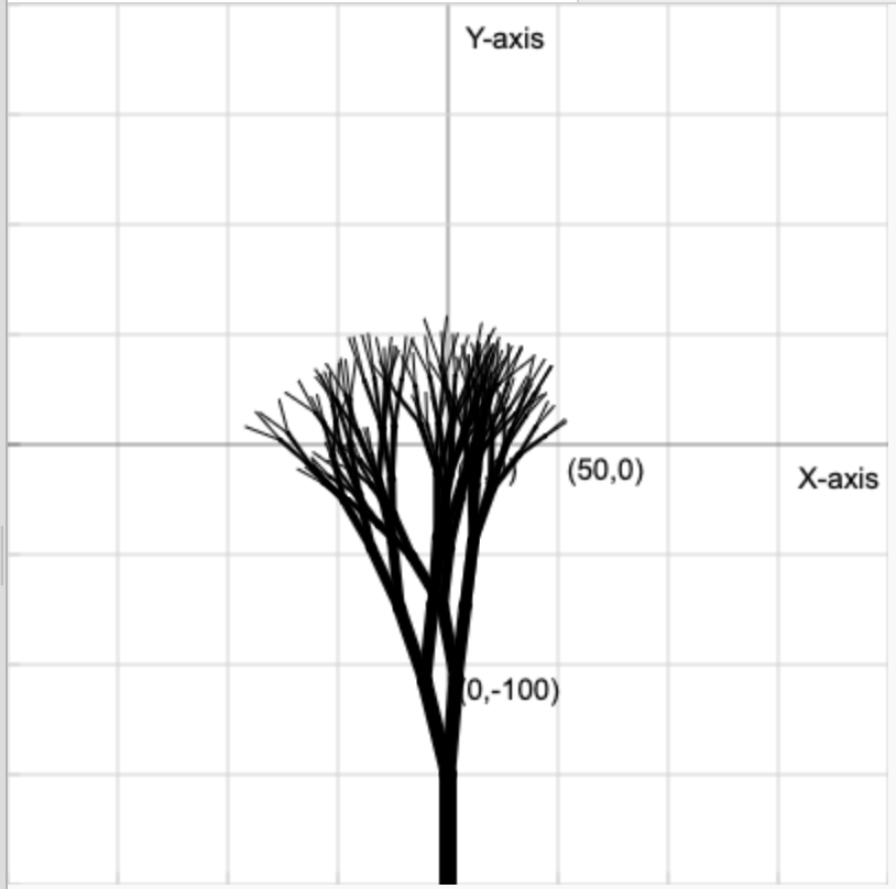 Modify the random values to create your own personal tree and submit a screenshot of your favourite result below! (You could even try adding colour, remember that the leaves could be those branches with a width of 1)