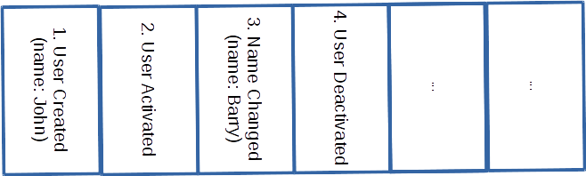 1. State = Initial State + UserCreated(name: John) applied