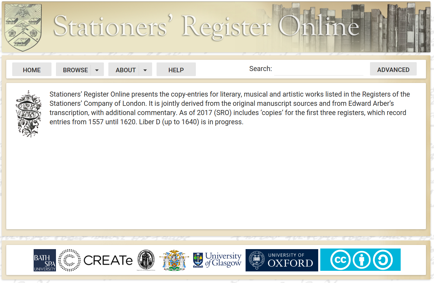 - A project originally from University of Oxford and Bath Spa University led by Giles Bergel and Ian Gadd to transcribe first three stationers registers (1557 – 1620)
