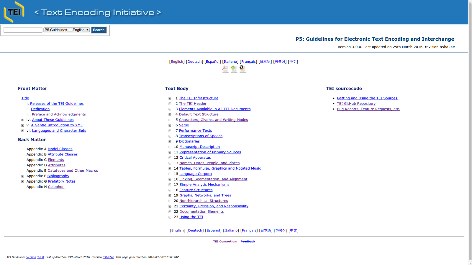 - The TEI is a set of prose guidelines that currently recommend using XML as an encoding format: