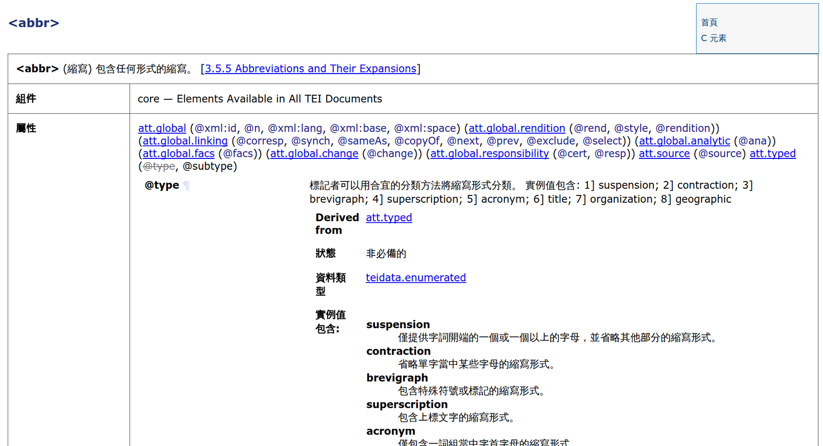 - Definitions, examples, and discussion of over 540 markup distinctions for textual, image facsimile, genetic editing etc.