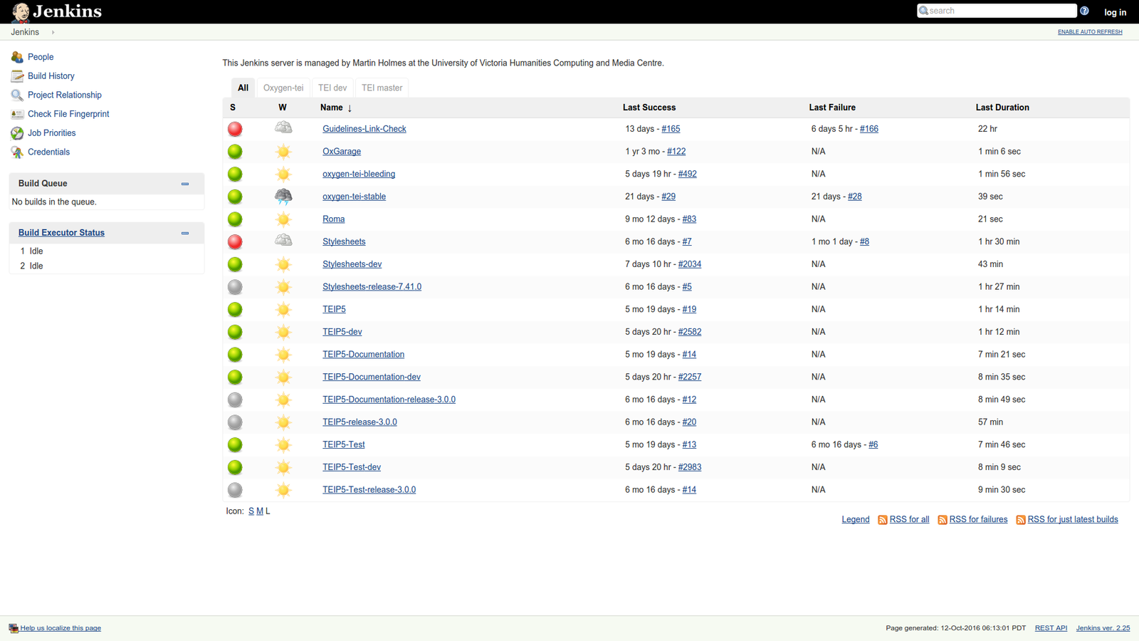 - Jenkins (Continuous integration: jenkins.tei-c.org)