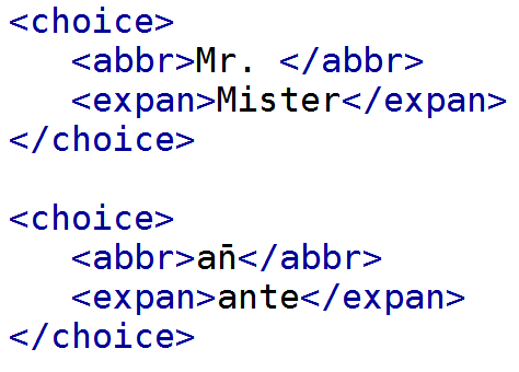 - The core module provides some phrase-level elements which may be used to record simple editorial interventions.