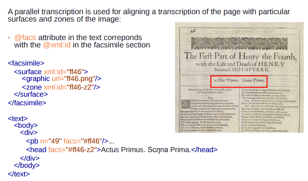 - Inspect the original document or an image (facsimile) of it → <facsimile> or <sourceDoc>