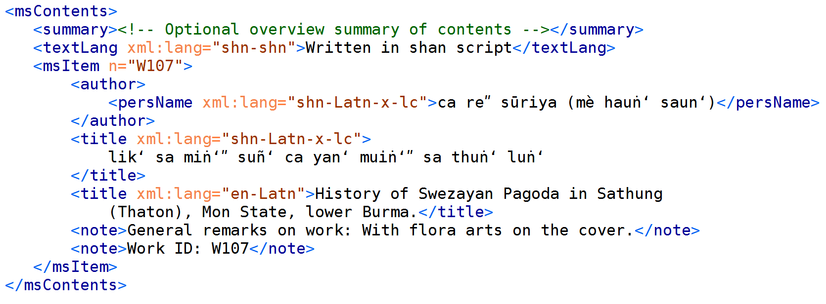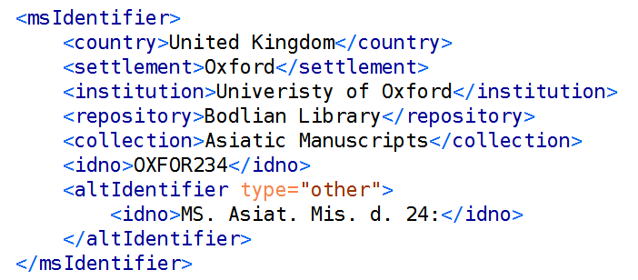 - <msFrag>: to describe manuscript fragments as part of a virtual whole