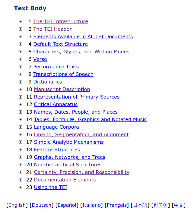 The drama module extends this with more elements for dramatic structures like cast lists.
