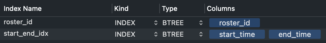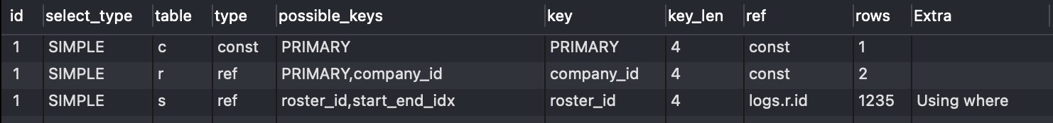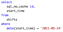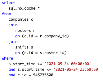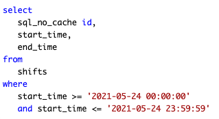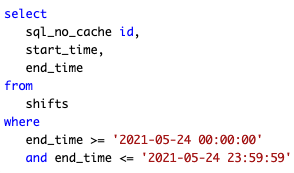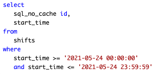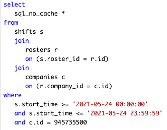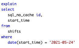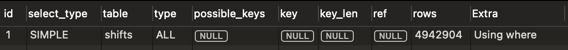 MySQL is conducting a full table scan to find the shifts
