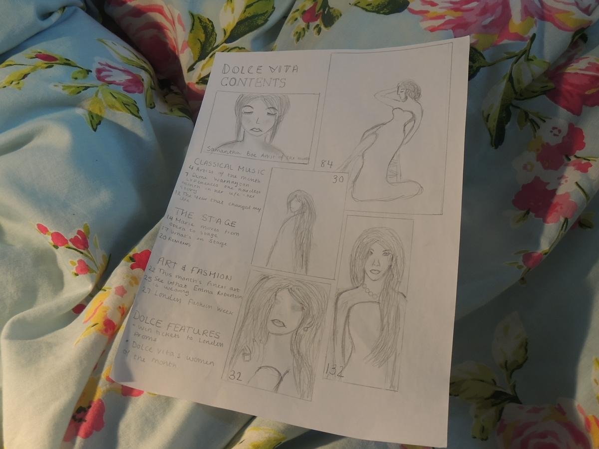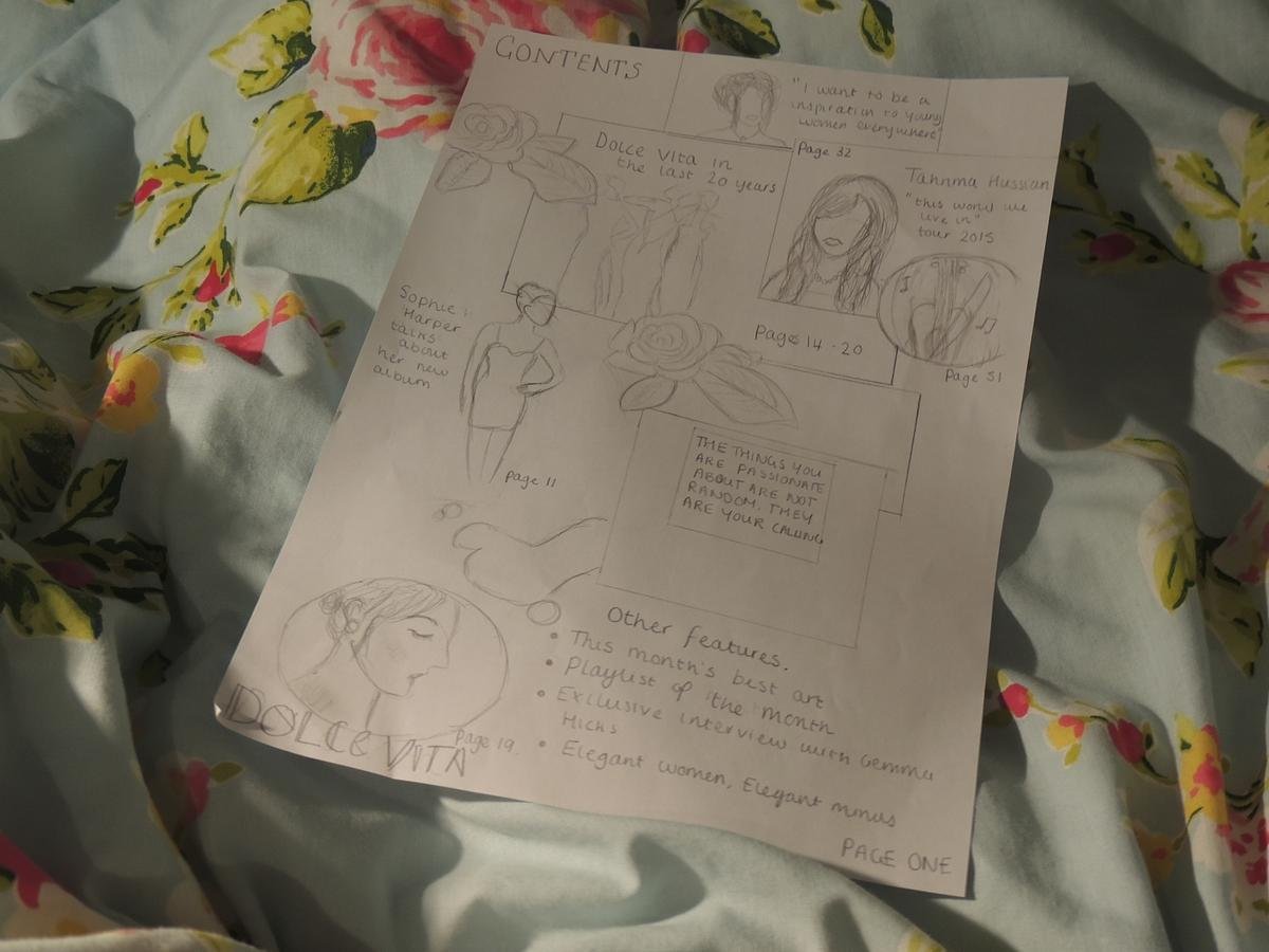 This contents page was inspired by a image I found on Pinterest. Even though this design is simple, I thought it looked quite artistic so I decided to try a mock up of it.