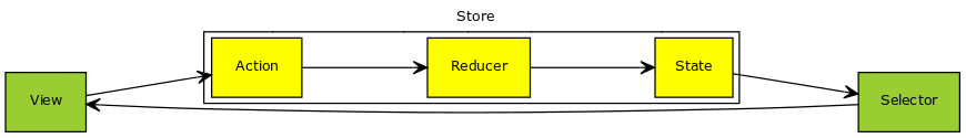 - Reducer = Funktion von Action und State (Redux)
