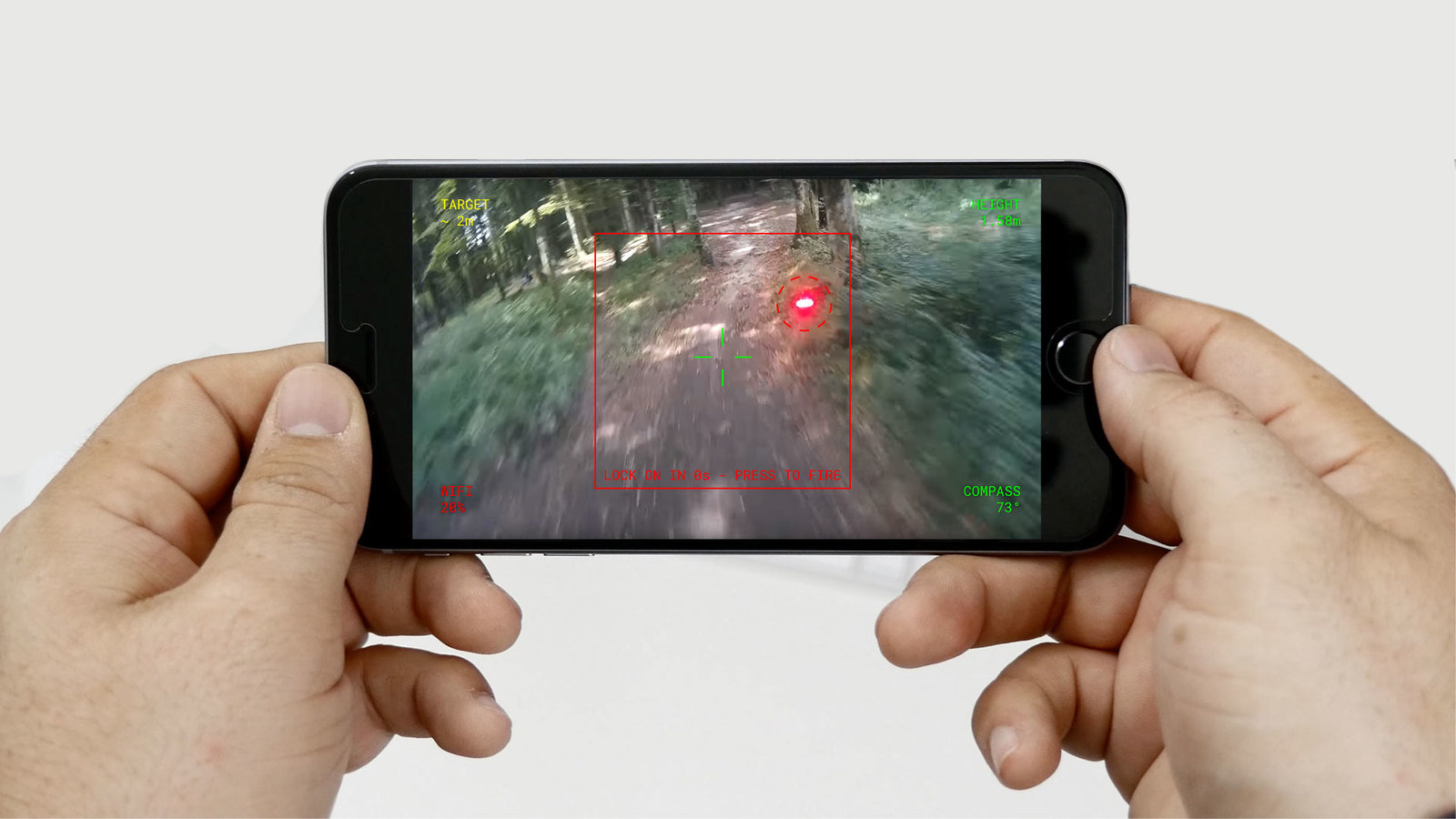 - Drohne so positionieren und drehen, dass gegnerische Drohne für x Sekunden im Fadenkreuz bleibt