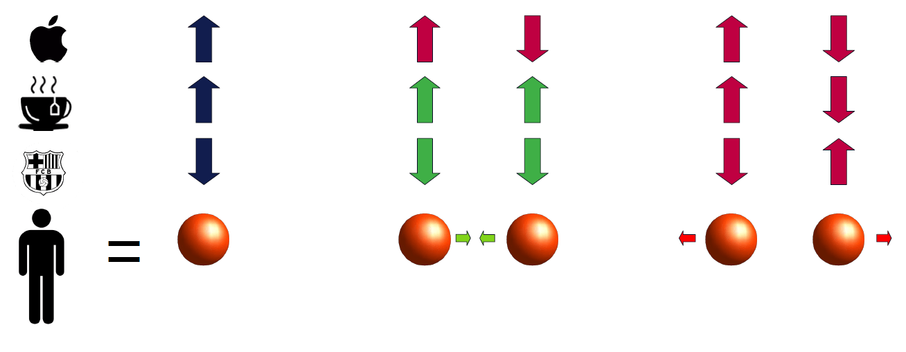 - Similarly to physics, individuals tend to minimize their social stress as much as possible