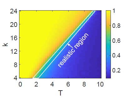 - We observe the transition from a fragmented to a polarized society which depends on the network degree \(k\)