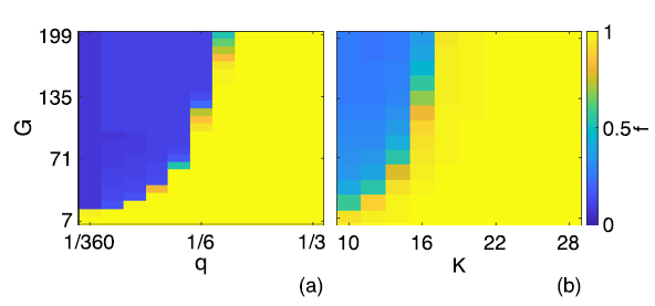 - For large enough \(q\) and degree \(k\) the system reachs stationary, balanced, and fragmented state