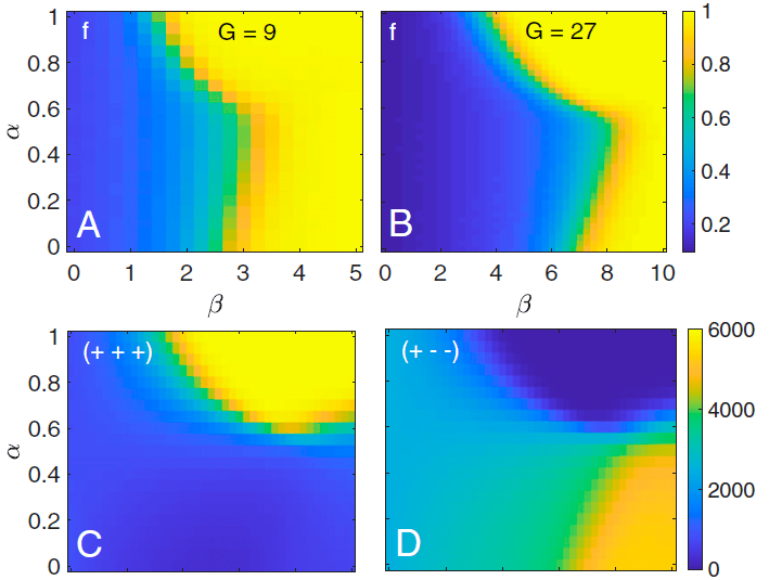 - We define \(f = \frac{n_{+}-n_{-}}{n_{+}+n_{-}}\) where \(n_\pm\) is the number of (un)balanced triangles