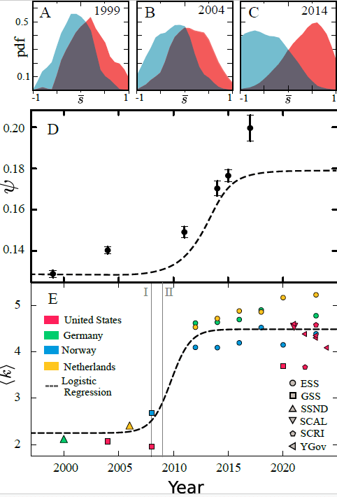 - We also observe the increase in polarization with the advent of social networks