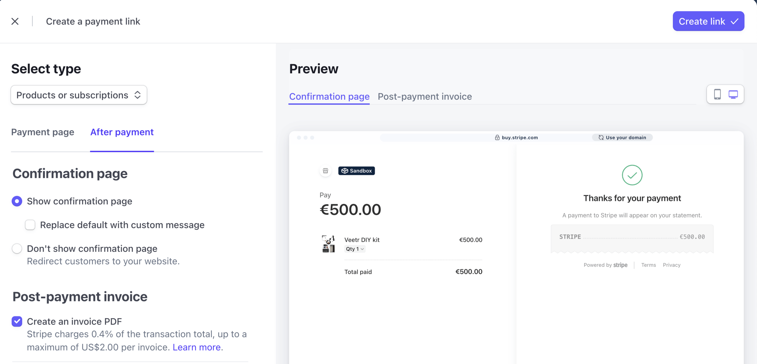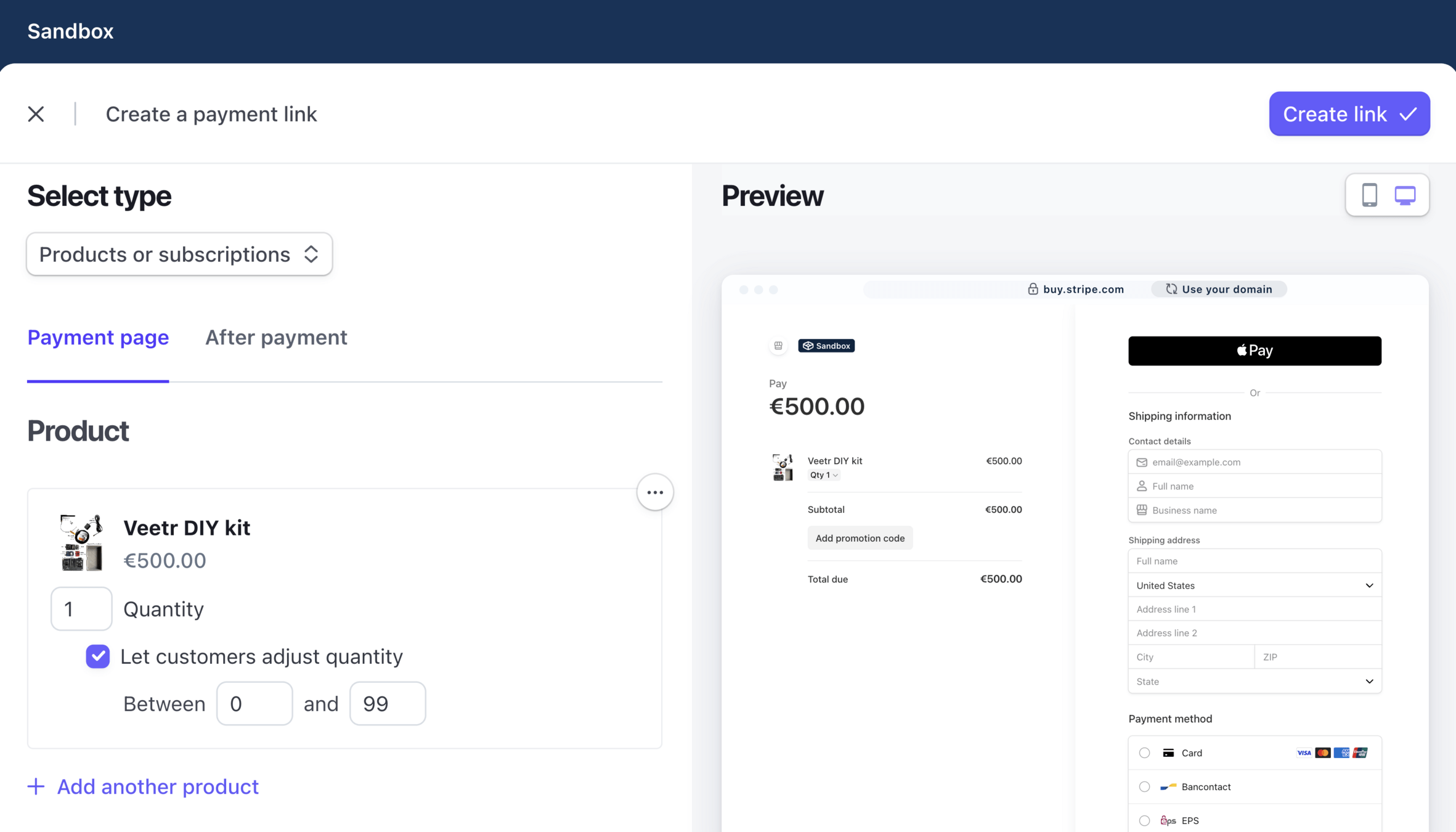 - Checkout - A pre-built, optimized, and secure payment page hosted by Stripe