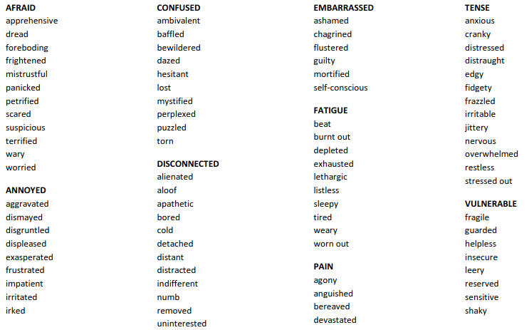 In NVC, we distinguish between words that express actual feelings and those that describe what we think we are.