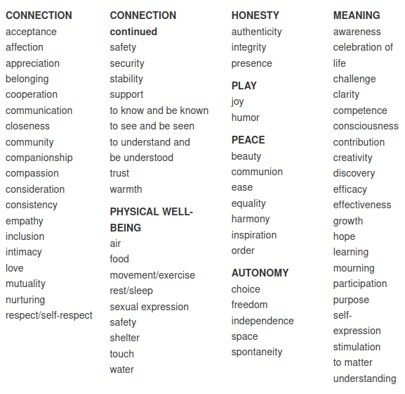 The more directly we can connect our feelings to our own needs, the easier it is for others to respond to us compassionately, and if we express our needs directly, we have a better chance of getting them met.
