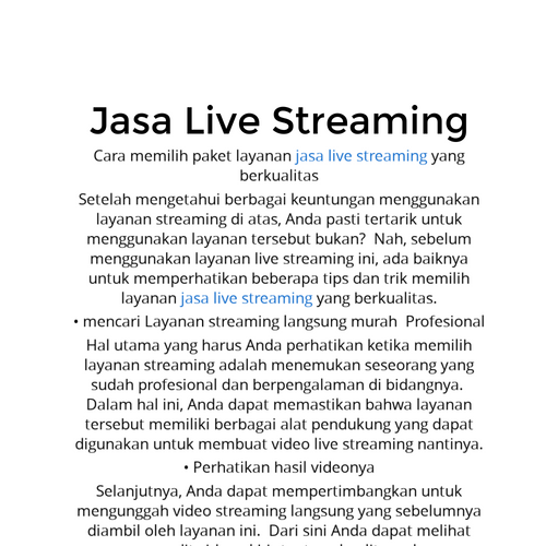 Kami adalah perusahaan jasa audio visual Menyediakan Layanan jasa streaming streaming. Karena saat ini sedang menjadi trend di semua kalangan, terutama pada diri saya sendiri. Beberapa yang kami tawarkan antara lain untuk acara : mengumpulkan seminar pelatihan / pelatihan konser Tabligh Akbar pernikahan antara lain. Jasa Live Streaming kami dapat diakses melalui Facebook, Youtube, website dan Instagram. Layanan live streaming kini menjadi kebiasaan para pengguna internet, terutama yang tinggal di luar negeri untuk mencari pekerjaan, pasti akan menjadi kebiasaan atau kewajiban Anda. Misalnya, dengan menonton TV live streaming, Anda dapat mengetahui tentang acara terbaru dari negara yang Anda kunjungi dan menonton acara populer lainnya. Hanya dengan mendaftar untuk berlangganan internet, tentu saja Anda dapat menonton TV langsung dengan nyaman dengan browsing atau sebaliknya. Saat ini layanan live streaming terbaik Indonesia telah menjadi layanan profesional yang sangat dibutuhkan oleh event organizer tidak hanya di Indonesia tetapi di seluruh dunia di masa pandemi ini. Hal ini erat kaitannya dengan semakin banyaknya layanan live streaming di Indonesia karena sangat penting untuk melakukan event secara online di masa pandemi ini, dengan memanfaatkan teknologi untuk memaksimalkan event Anda. Salah satu kelebihan dari powerfull dan low budget adalah STREAMING, sehingga penting bagi event organizer untuk melakukan aktivitas menggunakan layanan live streaming. Halo Layanan Live Streaming Jakarta Perkenalkan kami layanan live streaming dari berbagai perusahaan di Indonesia dengan team yang berpengalaman dan terbaik serta telah berkecimpung di dunia AUDIO dan VISUAL selama lebih dari 10 tahun.