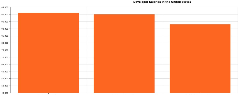 Average cost of employing iOS, Android, and JavaScript developers in the United States (http://www.indeed.com/salary, http://www.payscale.com/research/US/Skill=JavaScript/Salary)