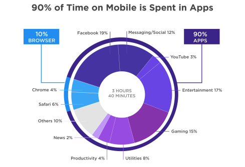 Time spent in mobile apps (April 2016, smartinsights.com)