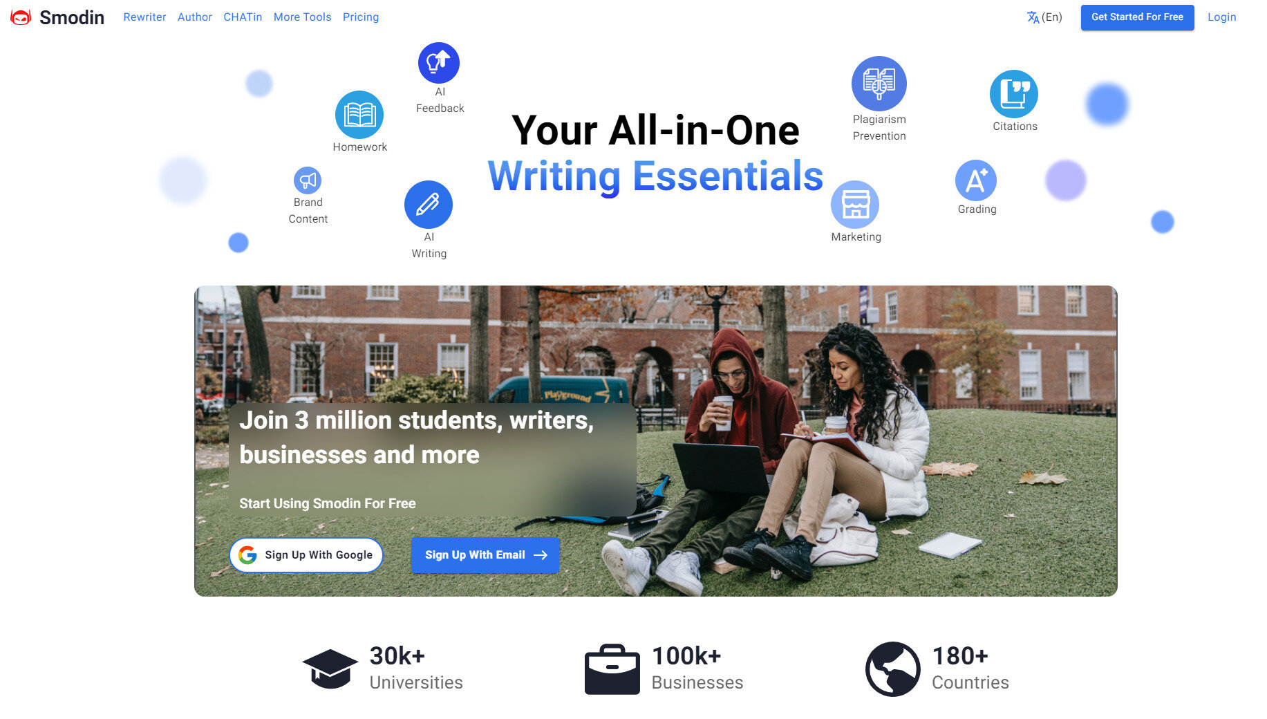 Smodin.io is an AI-powered essay-writing tool that promises to help students and professionals generate high-quality essays in a matter of minutes. According to its website, Smodin.io's algorithms analyze your input and generate essays that are plagiarism-free, coherent, and grammatically correct. The tool also claims to provide a wide range of essay types and topics, from argumentative essays to research papers.