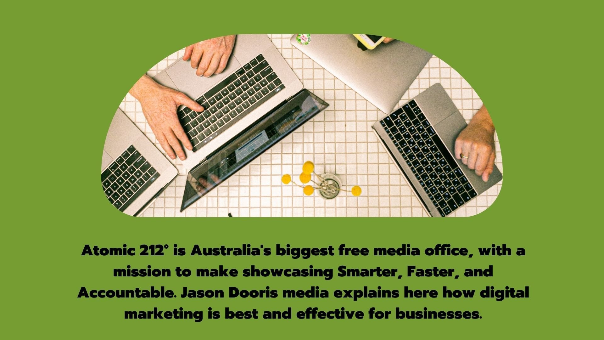 When you want to plug your website on the internet, you have got to remember the very fact that the competition during this channel is extremely tough. Atomic 212° is Australia's biggest free media office, with a mission to make showcasing Smarter, Faster, and Accountable. Jason Dooris media explains here how digital marketing is best and effective for businesses.