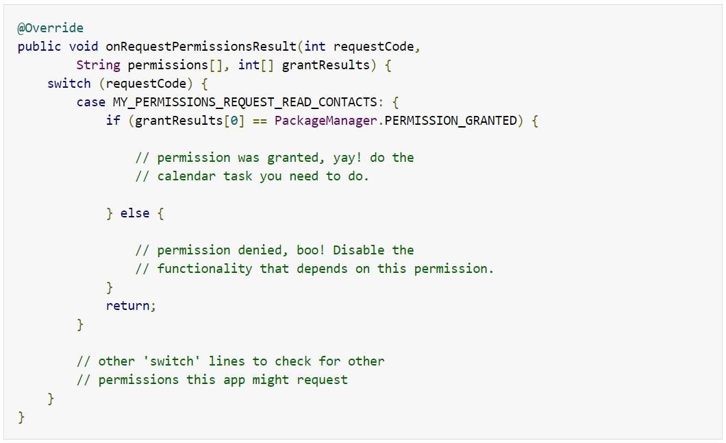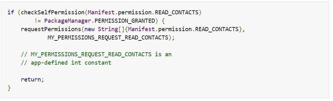 - 덕분에 개발자들은 퍼미션에 대한 설명 / 허가하는 페이지, 혹은 동작을 개발 해야 합니다.