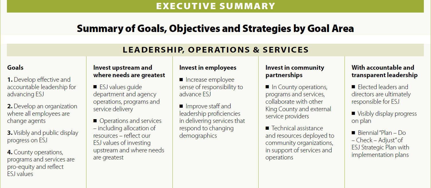 The Office of Equity and Strategic Justice was created in 2015, facilitated creation of the King County Equity and Strategic Justice Plan