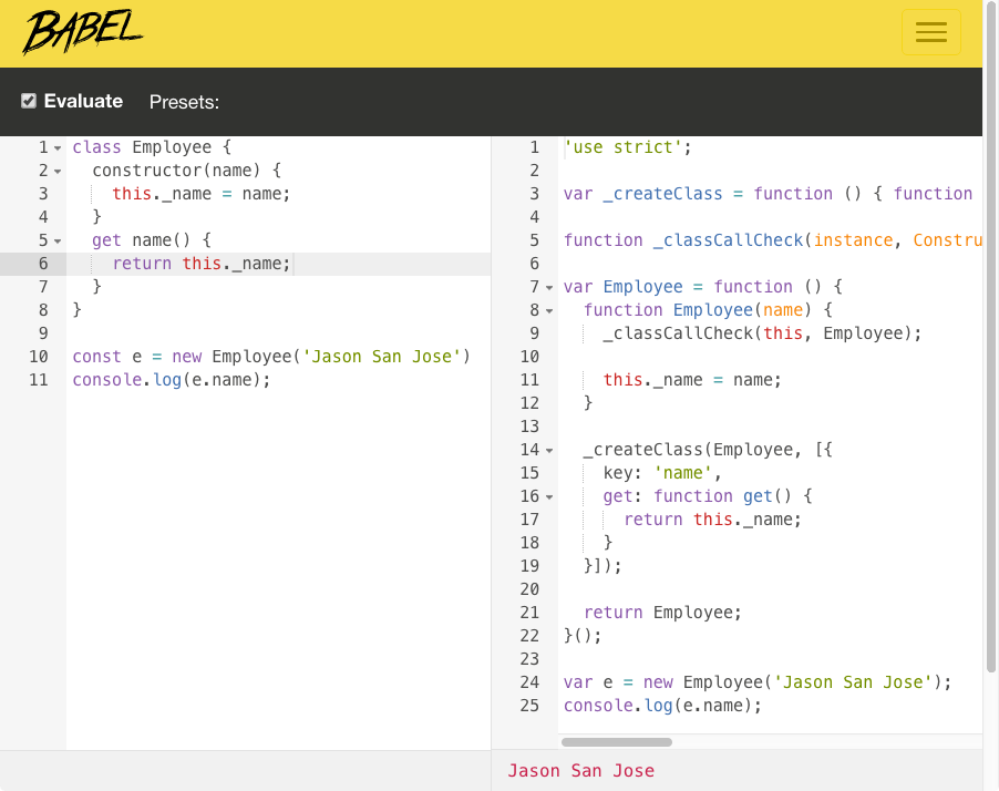 $ babel script.js --out-file script-compiled.jsBabel REPL