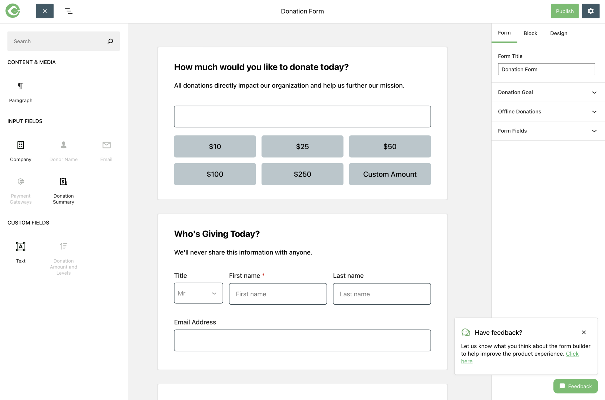✅ Visual Donation Builder feature plugin in Q1