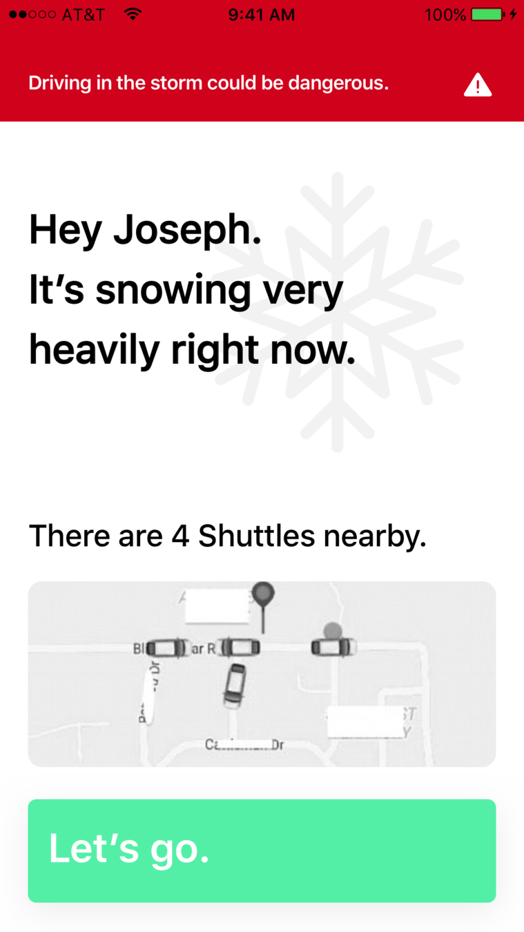 A smart shuttle that withstands extreme weather conditions and transports a group of people to goods and services around the city.Â