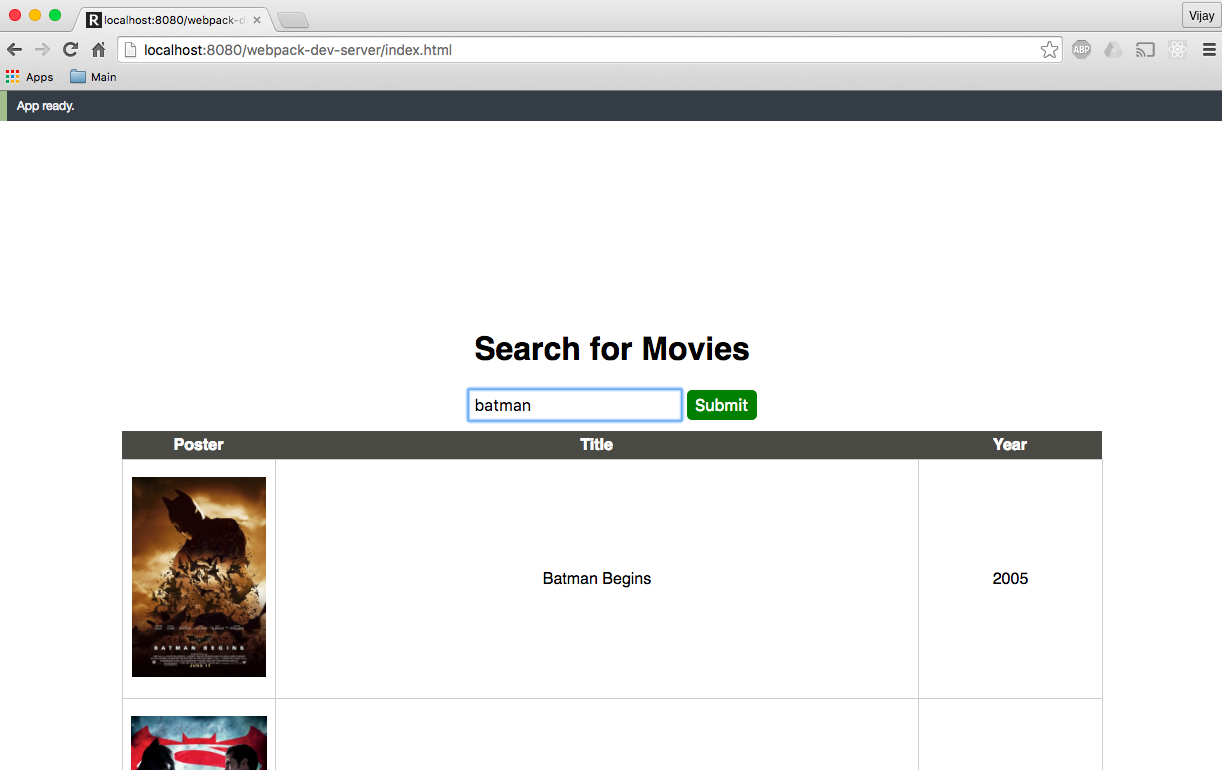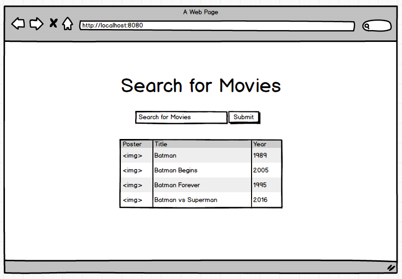 </tbody>Let's edit our MovieListings component to utilize the 'movies' props filled now with movies from our AJAX call at the App level.