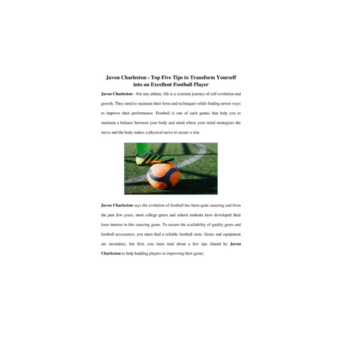 Javon Charleston play the football player role and often sees the most action and moves the most during a game. Midfielders play both defensive and offensive roles and must be accurate passers.