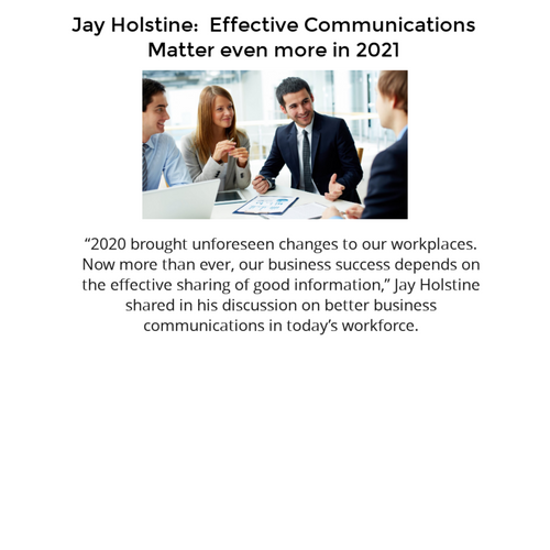 Jay Holstine speaks to CEO Peer groups regarding effective communications in 2021. Topic addresses hybrid work work models, covid and other pressing concerns.