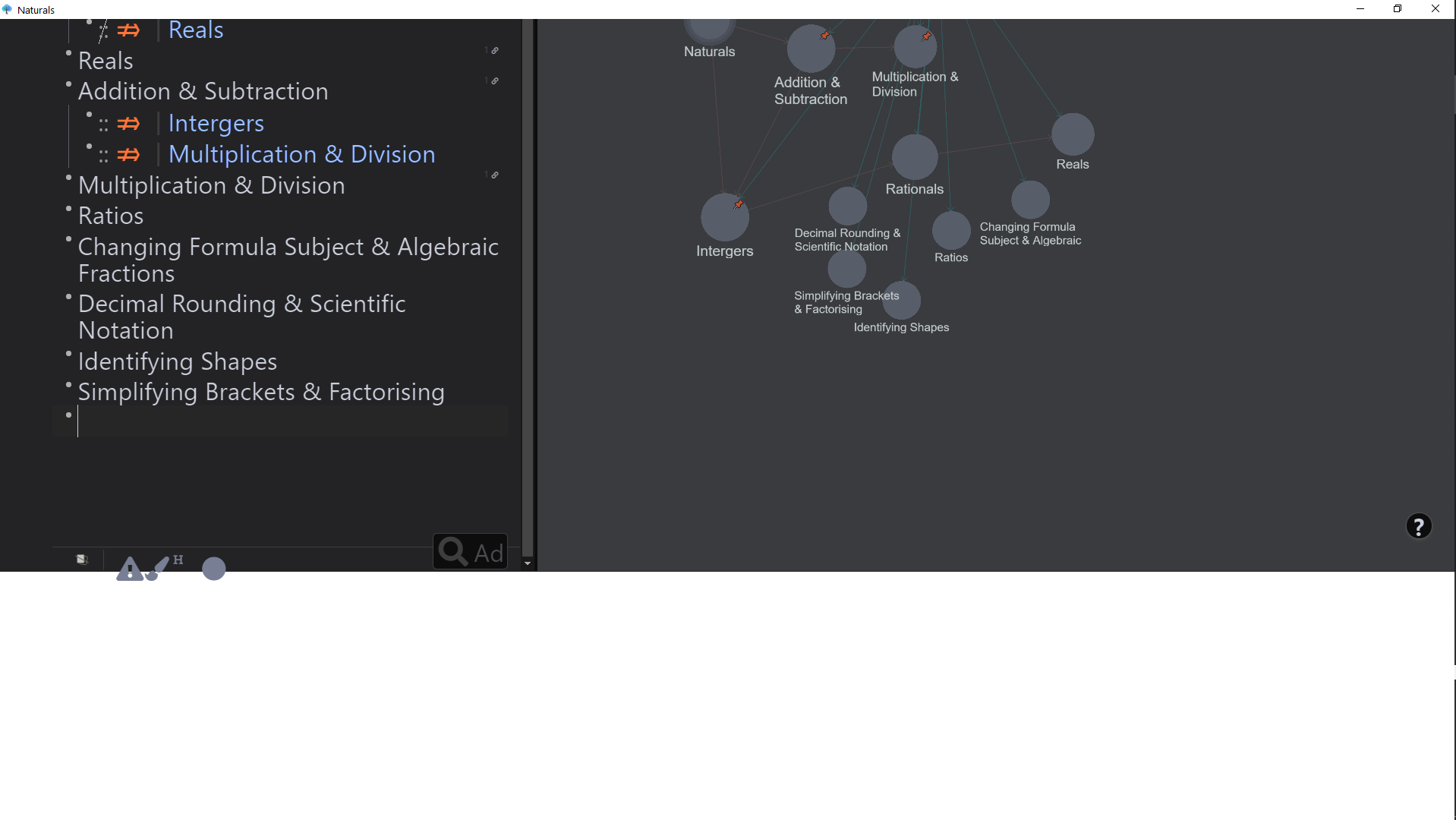 I want RemNote to export the backend of that Math Map (from the slide before), encoded in a tree structure like this site does. I will put it in a 'Documentation' style format (click some nodes to see)