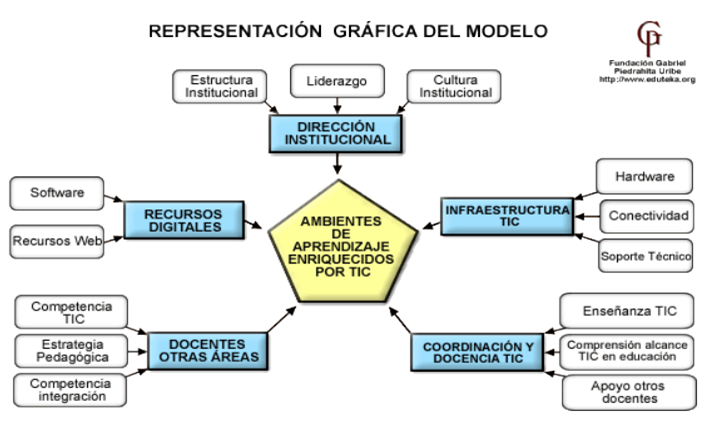 Las Tecnologías de la Información y la Comunicación (TIC) al currículo escolar propuesto por la Fundación Gabriel Piedrahita Uribe (FGPU). Los otros cuatro ejes identificados por la FGPU, producto de la experiencia de asesoría y acompañamiento que ésta ha ofrecido durante varios años a Instituciones Educativas (IE).