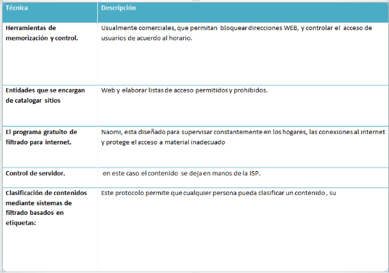 Sobre el software para controlar el contenido. Completa el cuadro con las técnicas que se utilizan.