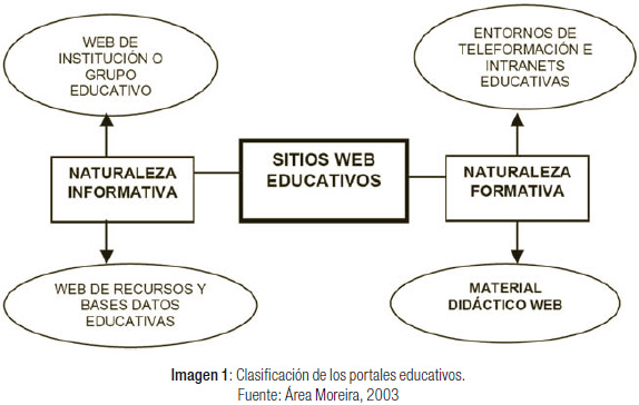 Los portales educativos de naturaleza informativa son aquellos a los que se accede para obtener una información o un dato concreto y los portales educativos de naturaleza formativa son aquellos que han sido creados “para generar un proceso determinado de enseñanza aprendizaje” (Area Moreira, 2005, p. 32).