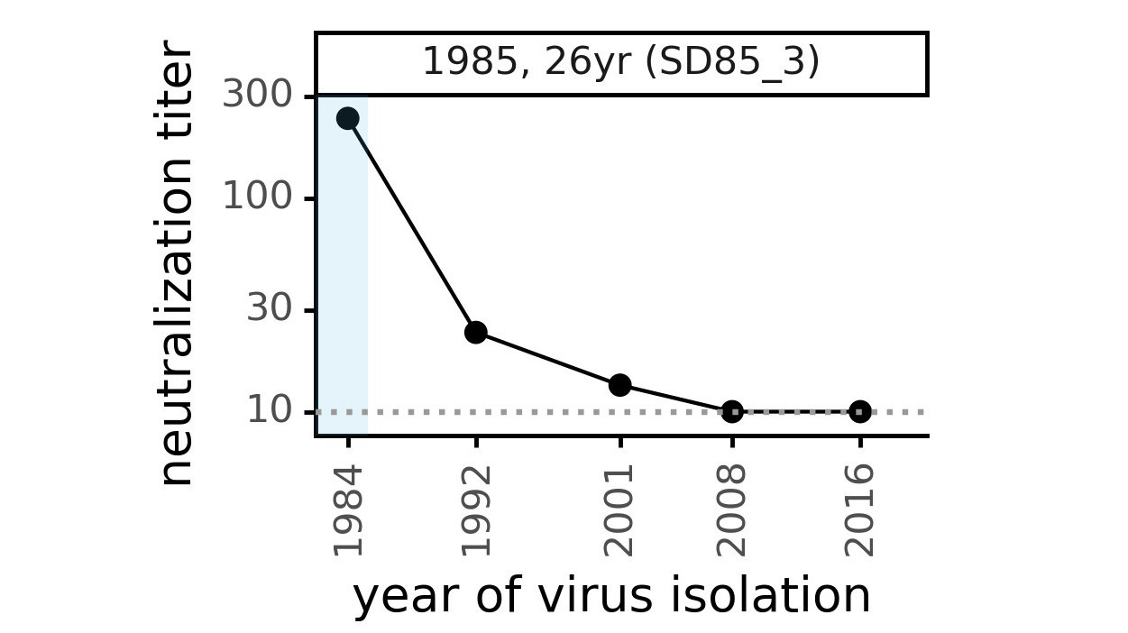 Ability of human serum collected in 1985 to neutralize isolates of CoV-229E from subsequent years. See this Twitter thread for details.