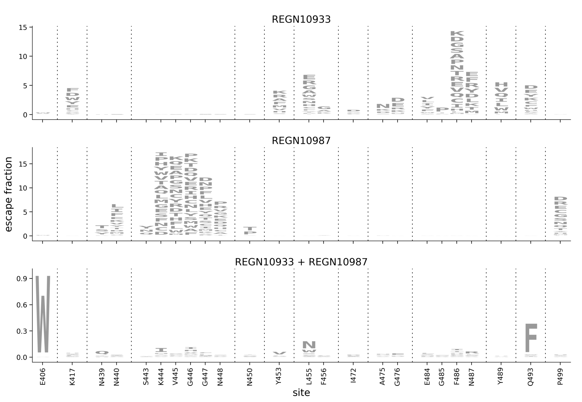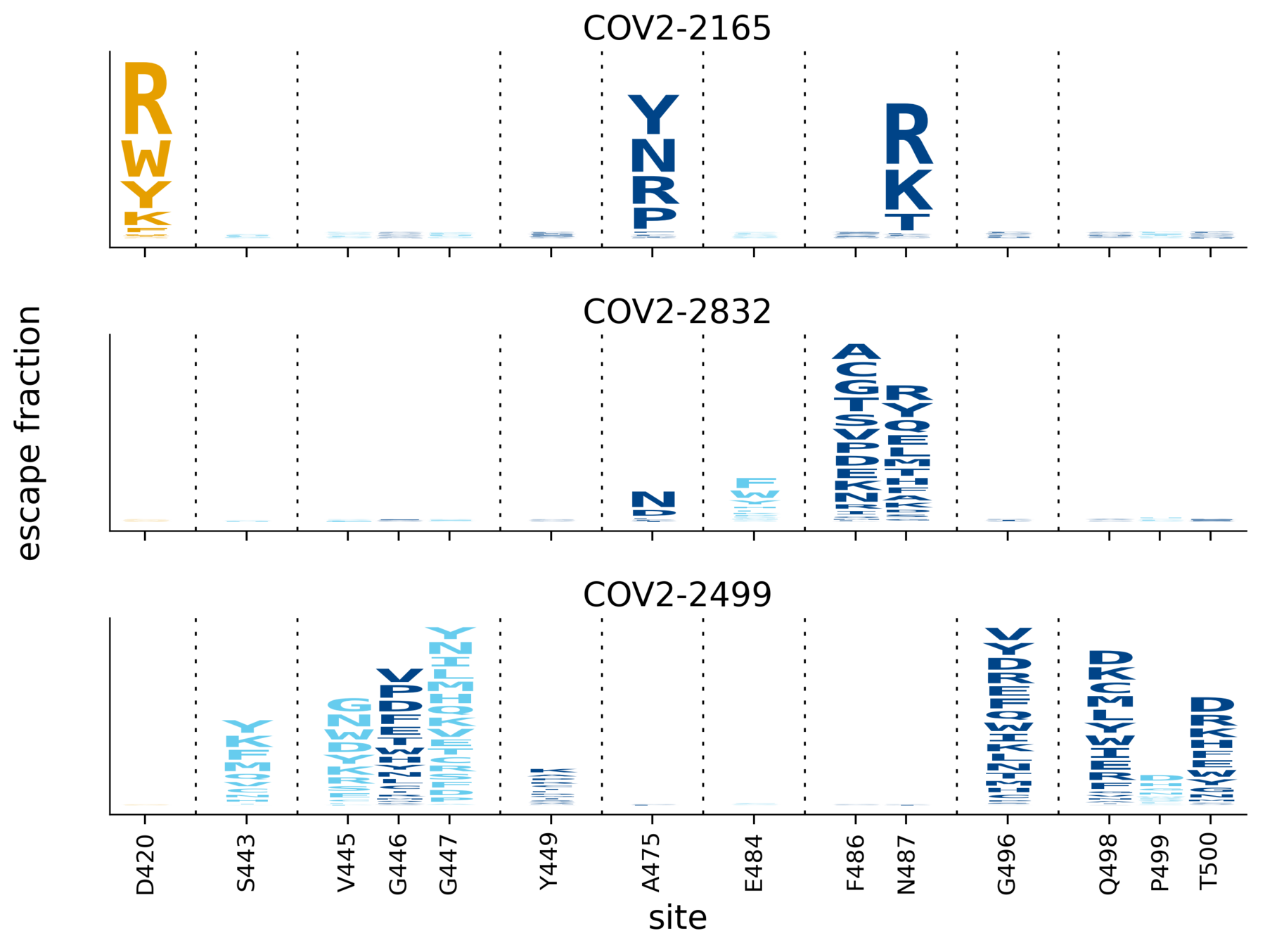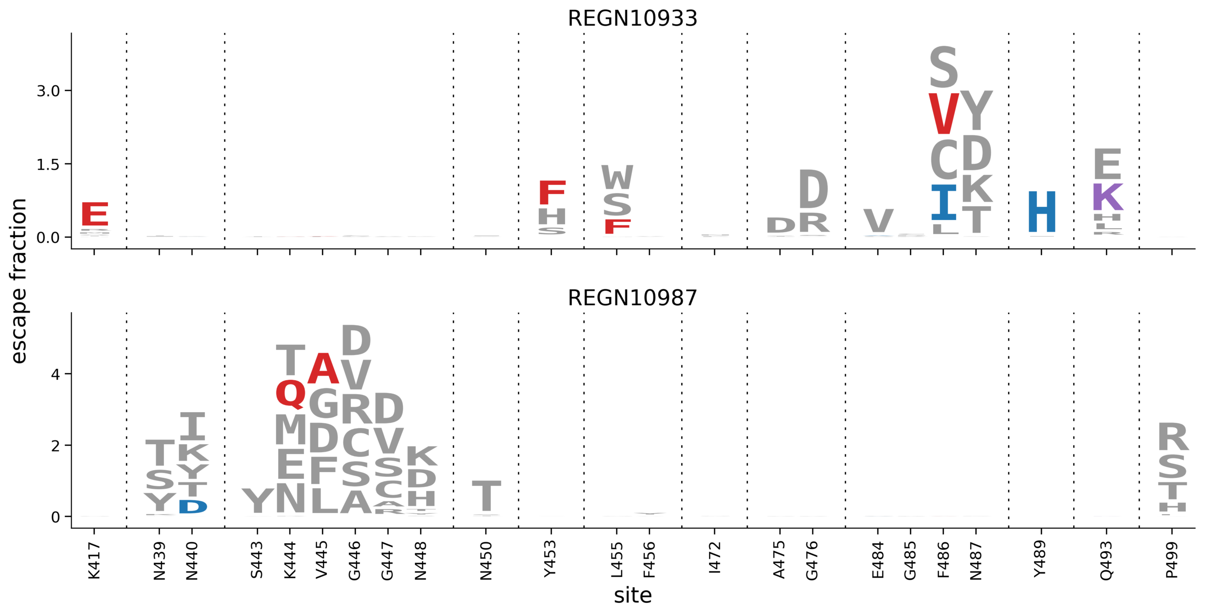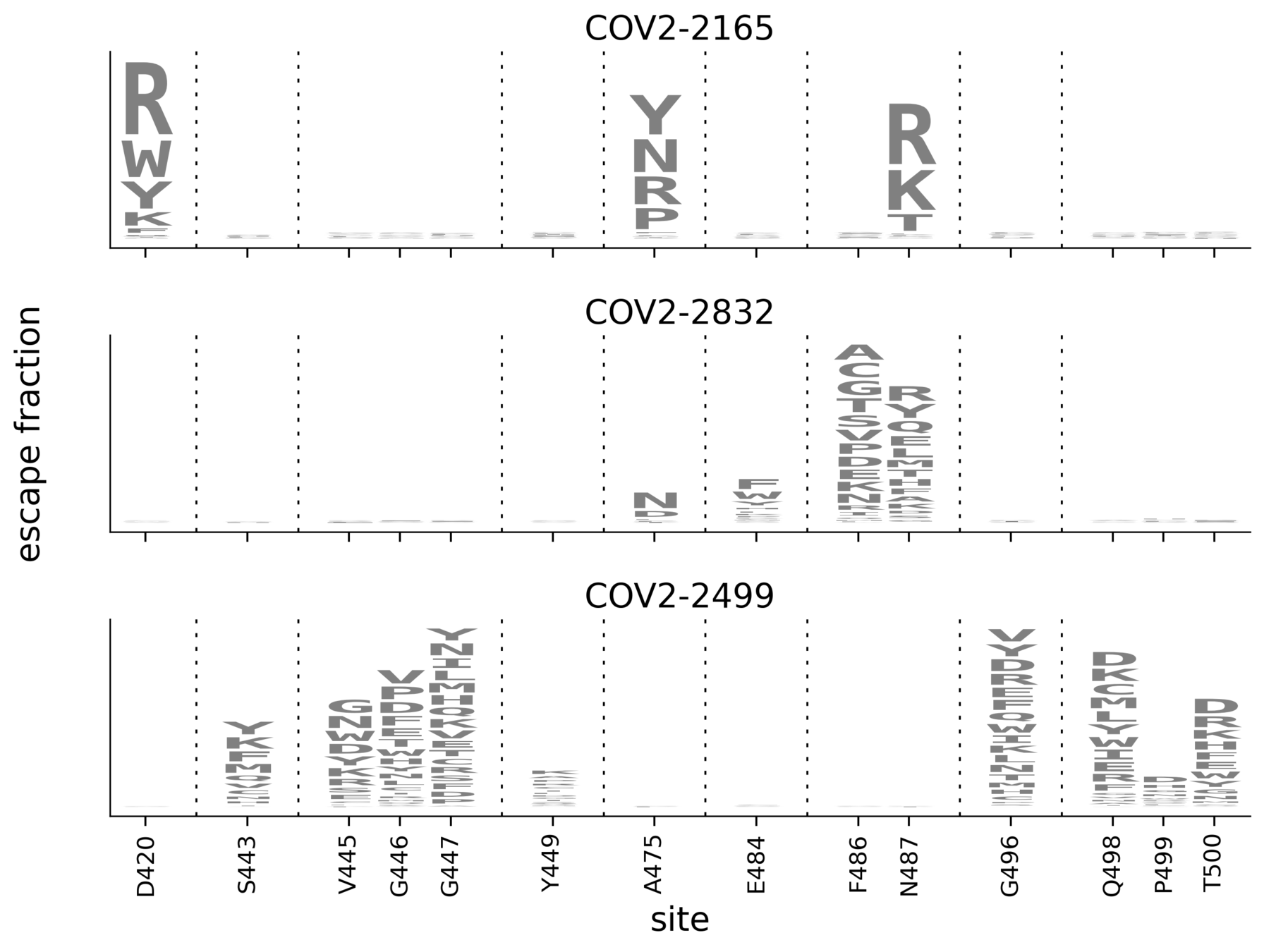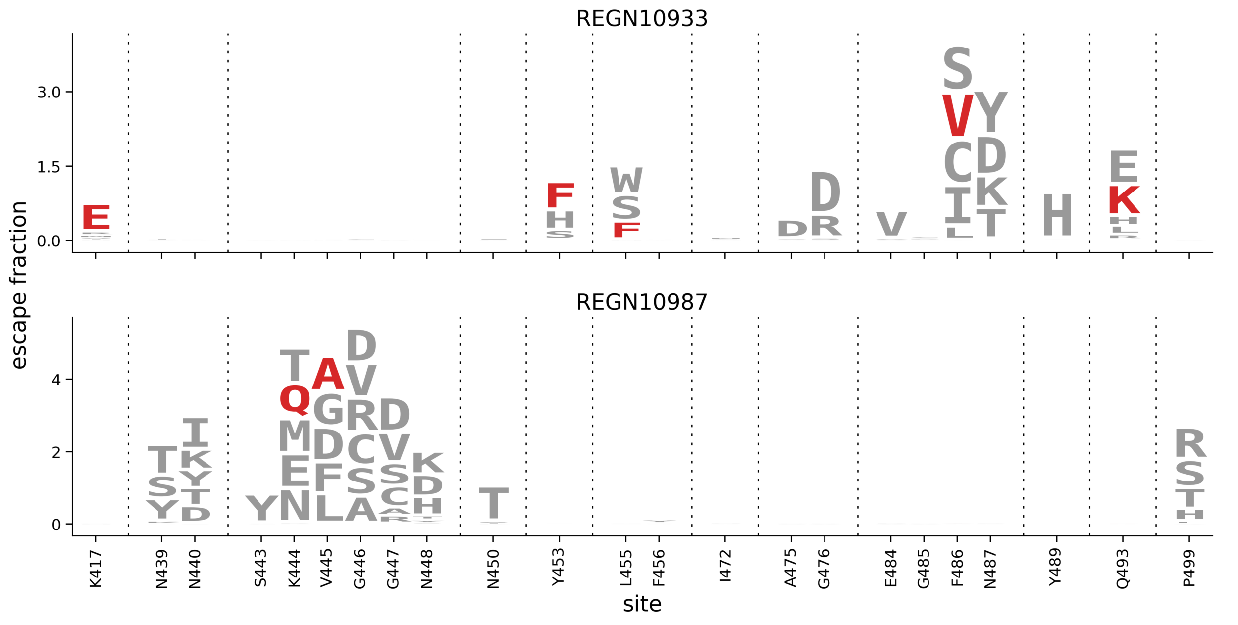 In maps, tall letters indicate strong escape mutations